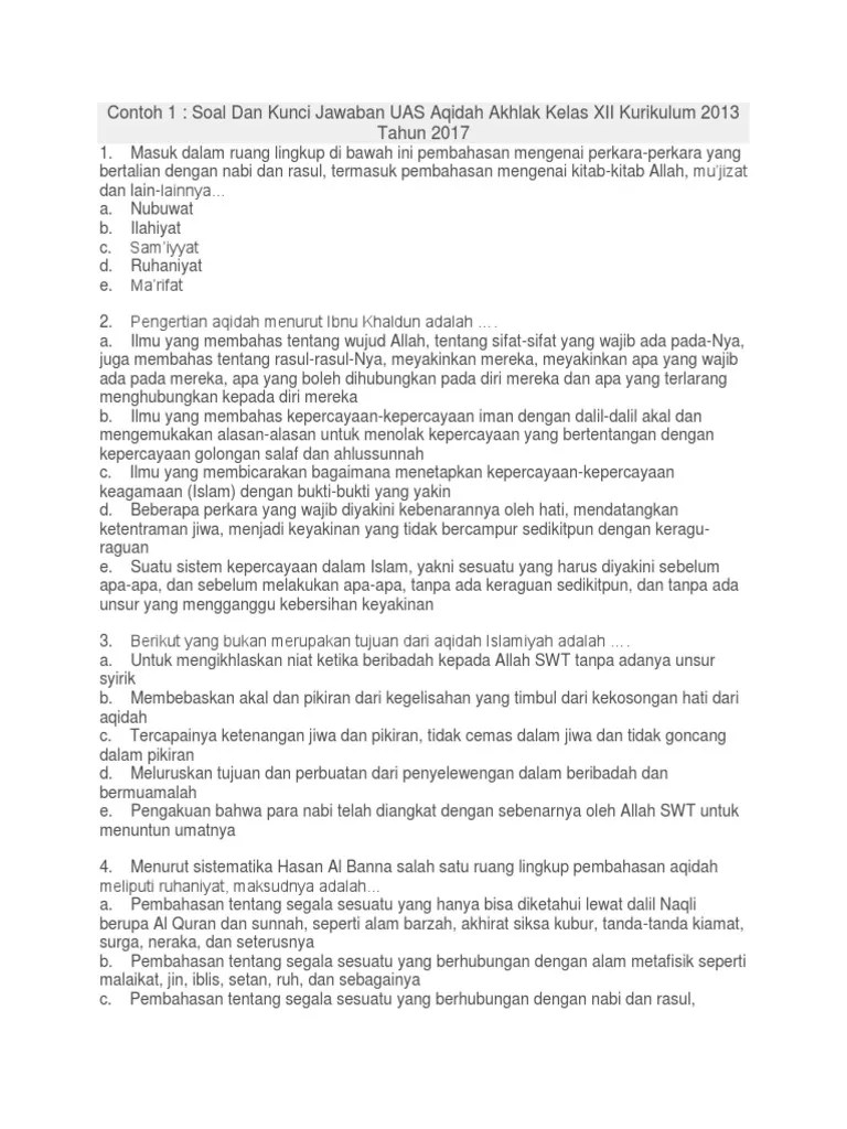 Contoh Soal Aqidah - Qkjmjy5l4ndj M - Di samping itu, bagi guru pai pengampu mata pelajaran akidah akhlak, kumpulan soal pas akidah akhlak ini dapat diigunakan sebagai contoh dan .